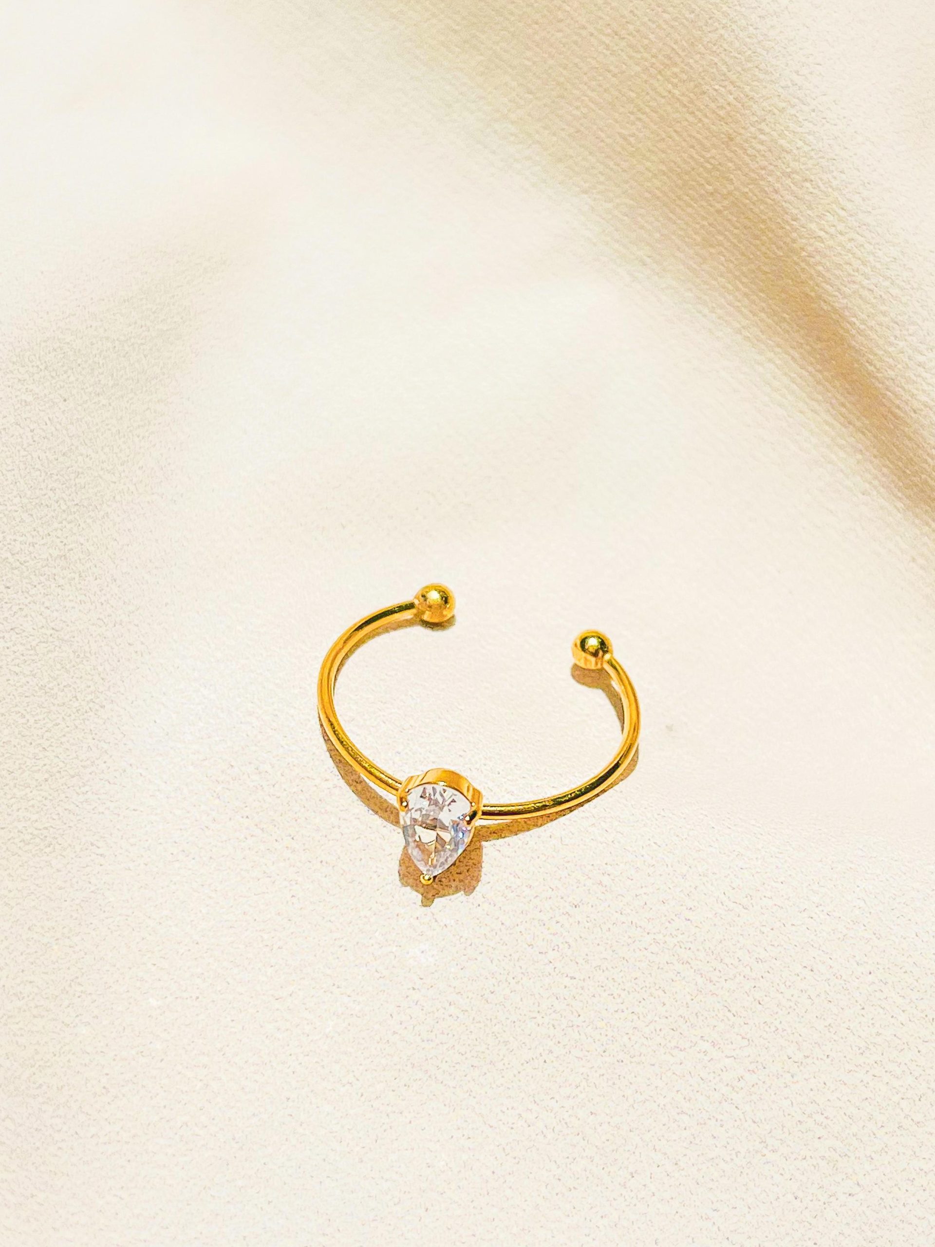 Add a touch of refined elegance with this pear stone open ring, crafted in premium stainless steel and plated with radiant 18k gold. 🌟 Designed to be waterproof, anti-tarnish, and long-lasting, this ring offers timeless beauty that shines for years.