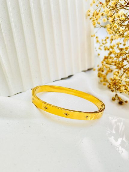 The Classic Shimmer Bangle offers a timeless and versatile design with sparkling accents, perfect for both casual and formal wear. A must-have for your jewelry collection. Crafted with high-quality Titanium Steel + Stainless Steel and finished with luxurious 18k gold plating, these beauties are made to shine every single day ✨ No color fading, no worries – we’ve tested them ourselves, and yes, they come with a 6-month replacement warranty! 🙌