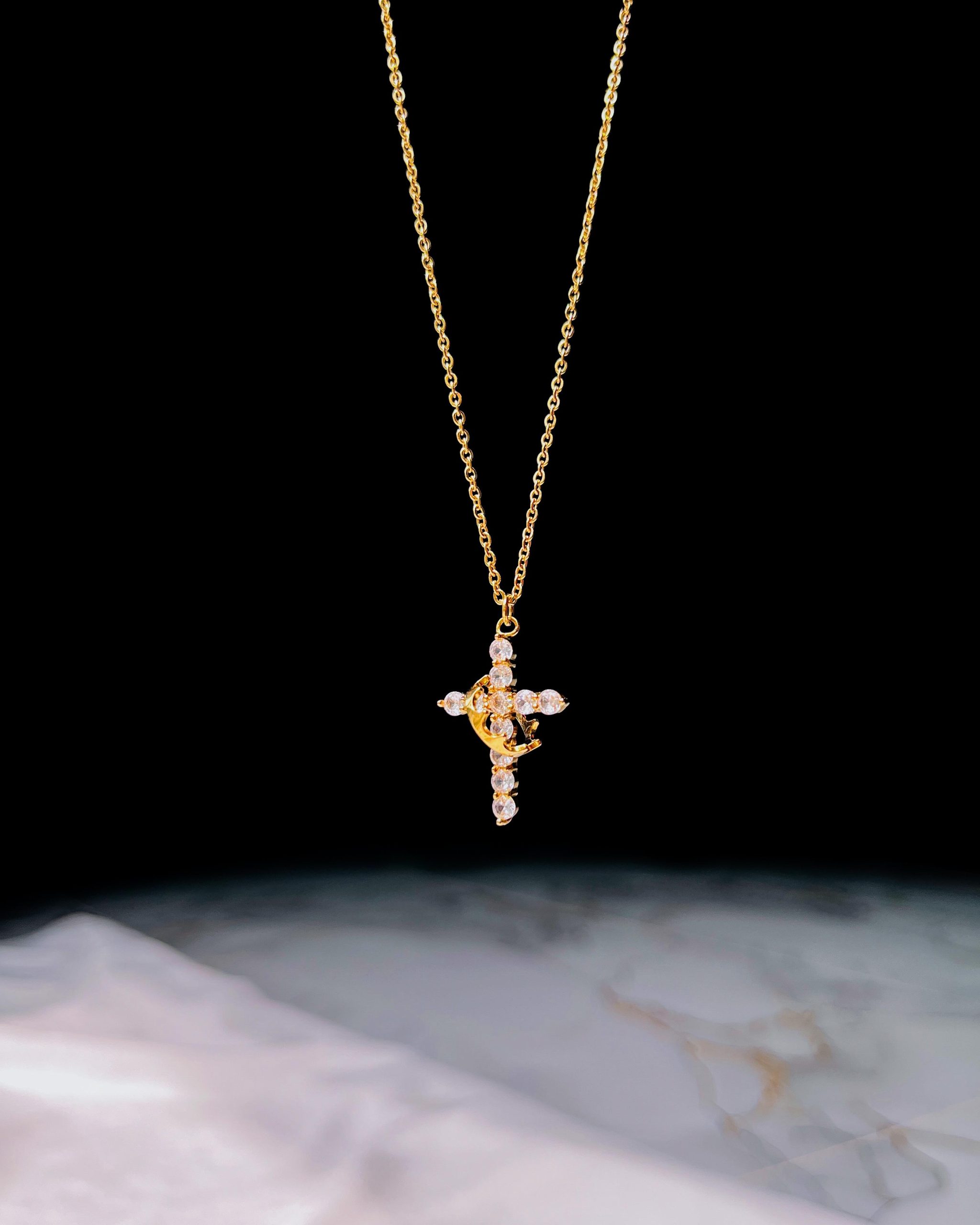 Elevate your style with this exquisite Cross Necklace, featuring a delicate crown that moves freely, symbolizing grace and power. Crafted with precision, the Stainless Steel 316L chain pairs perfectly with the copper pendant, enhanced with electrophoretic color retention for lasting beauty.